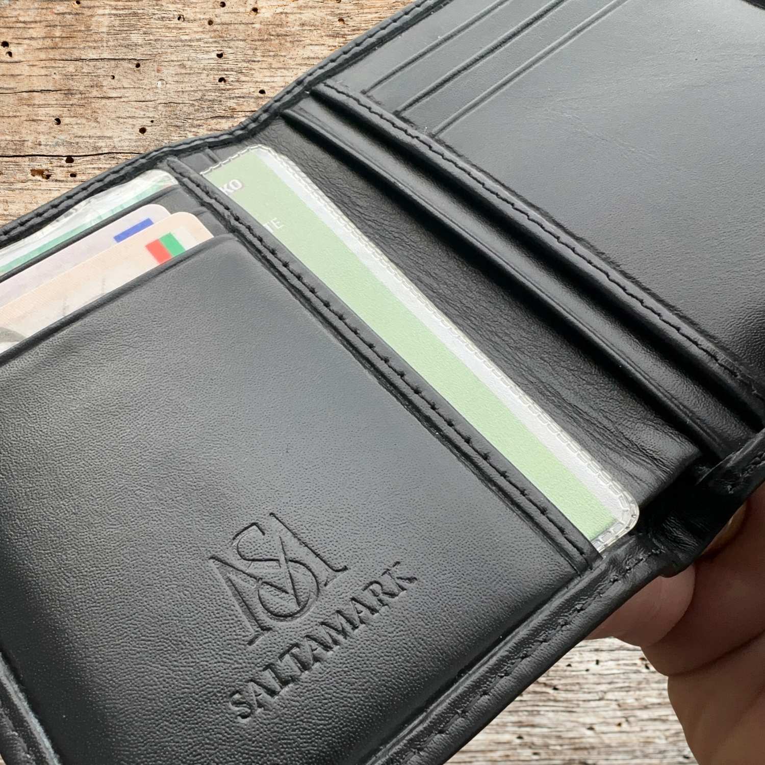 – 4 странични отделения за банкноти и членска карта (побира се с обложката)